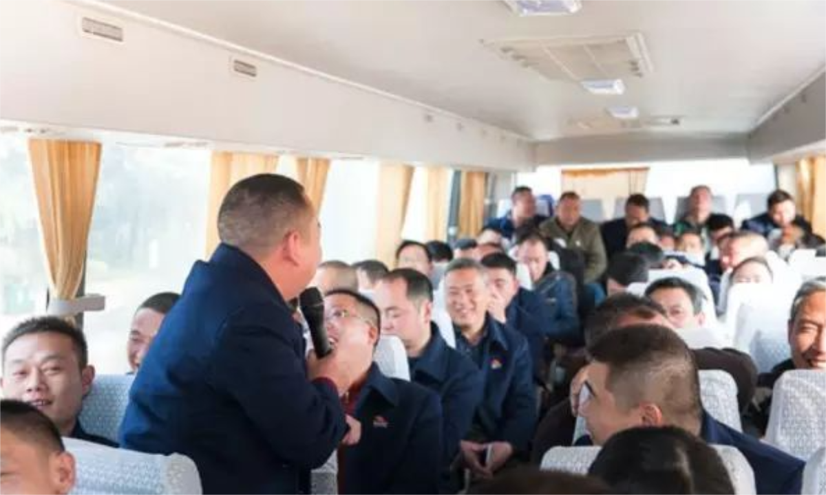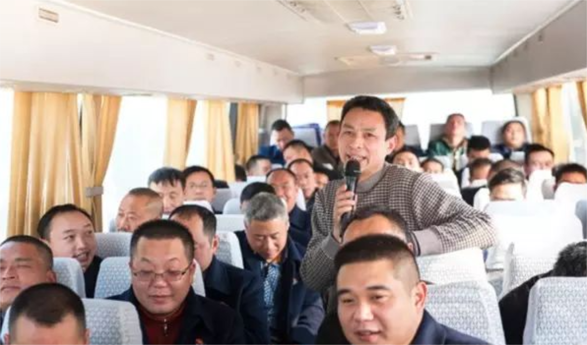 上車后,大家也不忘卻心中的那份喜悅,車上由張經(jīng)理主持著節(jié)目。