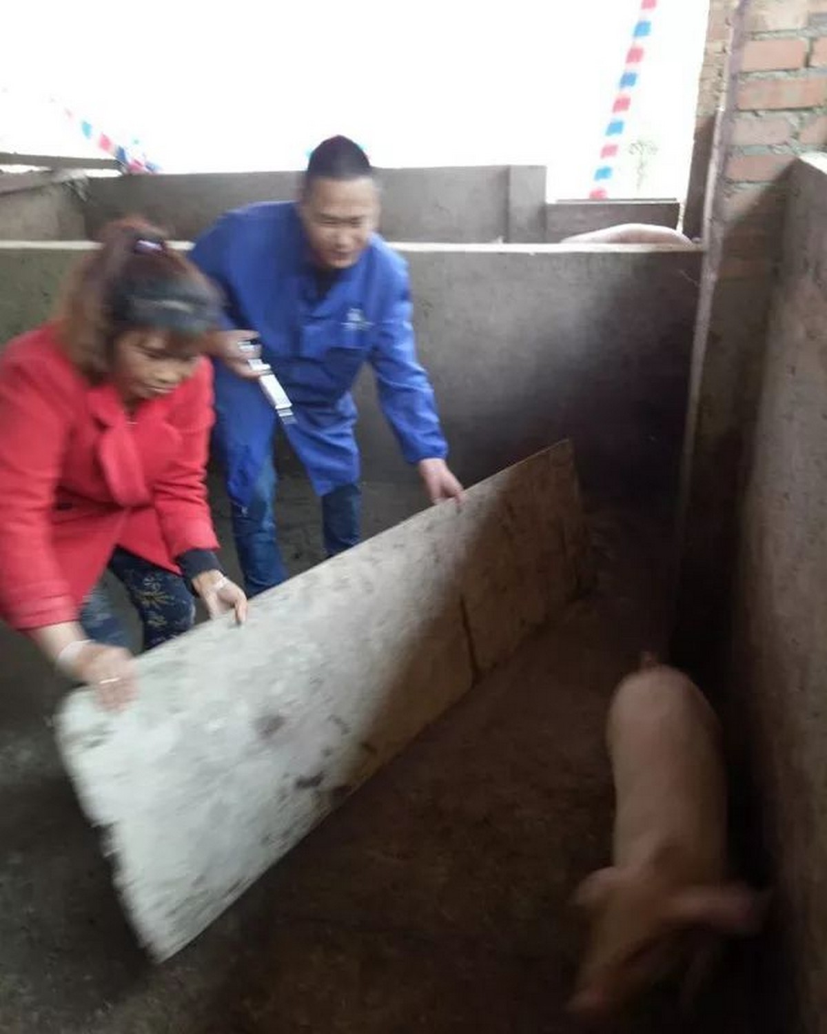 現(xiàn)在回味起來,才知道他給我上的第一課,是從這里開始的。早餐還未吃完,小宋就接到了綿山用戶打來的電話,說是一頭300斤的豬的豬蹄受傷,導(dǎo)致沒法站立。于是我們立即放下吃到一半的早餐,馬不停蹄的趕到用戶家里,為豬診斷病情,進(jìn)行打針治療,為用戶提供專業(yè)講解及后面該病豬的照顧方式、注意事項(xiàng)。