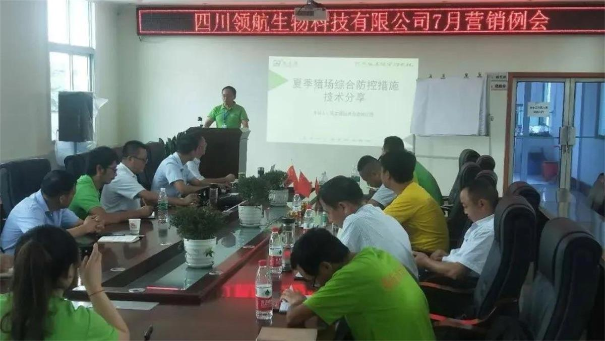 7月5日,四川領(lǐng)航生物科技有限公司召開2020年7月營(yíng)銷例會(huì),總結(jié)上半年?duì)I銷及公司全局工作,并對(duì)下半年工作進(jìn)行了部署安排。公司總經(jīng)理王坤先生主持會(huì)議并講話,公司戰(zhàn)略合作單位成都牧生源團(tuán)隊(duì)和廣東得寶團(tuán)隊(duì)受邀與公司全體人員參與了此次會(huì)議。