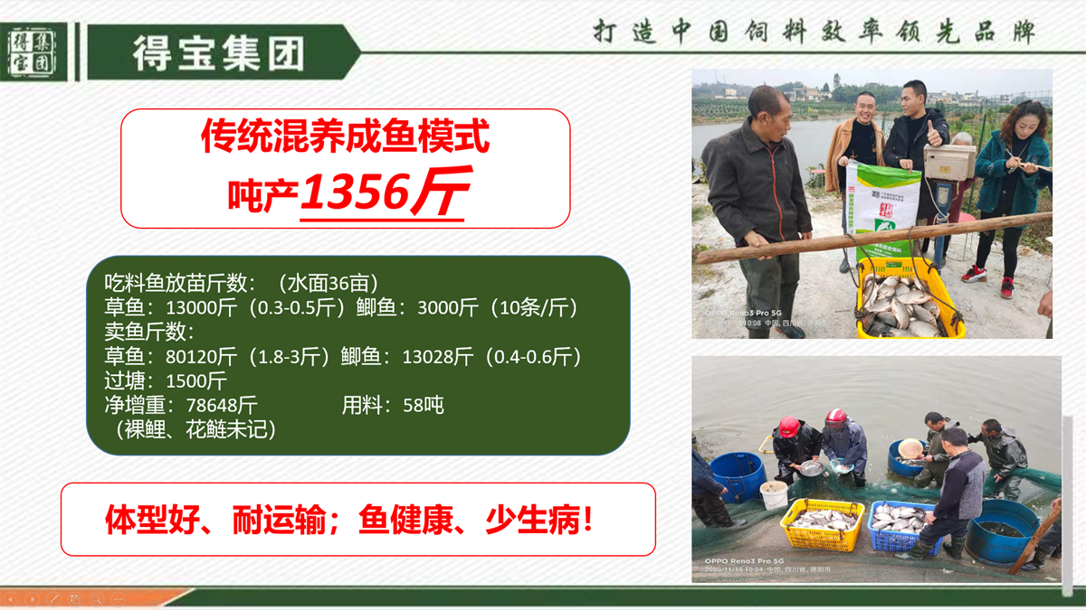 范經理詳細介紹了2020年得寶魚料在羅江地區(qū)的發(fā)展情況,講解過程中還對我們的魚料特點特性進行了詳細的介紹,并分享了一大批優(yōu)秀養(yǎng)殖戶的成功經驗,從中我們可以看到得寶魚料的好效果、高性價使我們的養(yǎng)殖效益有了可靠的保障。