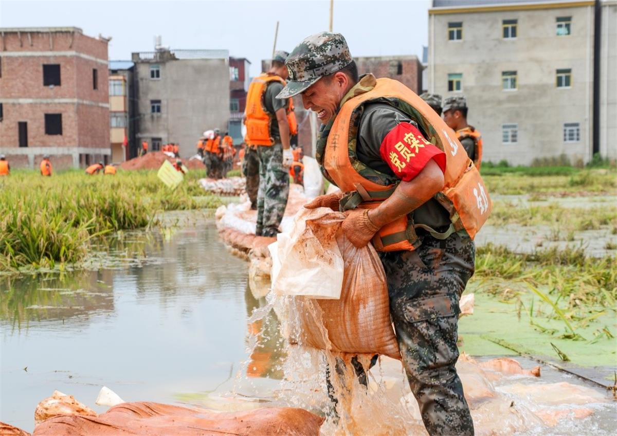 抗洪一線,頭頂炎日,人民子弟兵筑起防洪堤壩,在烈日驕陽下默默守護(hù)一方人民。